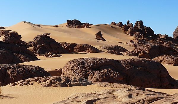 anderen Klimaphase erzählen, in der die Sahara noch grün und fruchtbar war. Wir durchwandern Landschaften, die geprägt sind durch den Wechsel von Sand und bizarren Felsformationen. In jedem Felsen